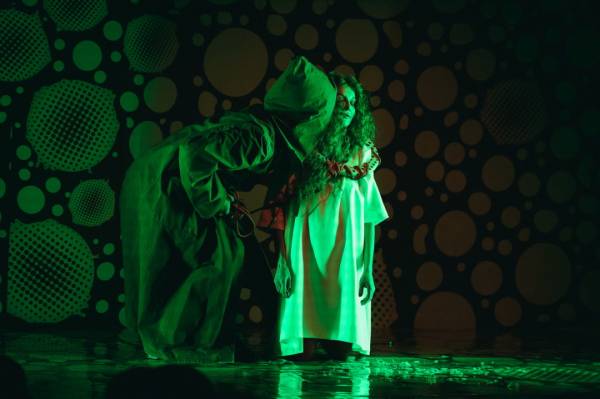 Хистка нереальність досягнута різними мистецькими засобами: емоційною музикою, що посилює психологічний ефект (композитор Юрій Звонарь), психоделічним оформленням та світлом (сценографія Поліни Панченко), екстравагантними костюмами (художник Тетяна Іваночко), надзвичайною пластикою (режисерка пластичного рішення Ольга Семьошкіна) і звісно талановитою грою двох акторів.