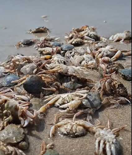 Тисячі крабів, що викинулися на берег, – ще одне свідчення, що з Чорним морем не все гаразд. Фото: ФБ Іван Русєв