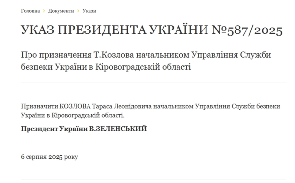 Новим очільником Головного управління СБУ в Кіровоградській області став Тарас Козлов. Водночас новим очільником Головного управління СБУ в Полтавській області став Костянтин Семенюк.