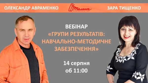 Учителів української мови та літератури запрошують на безкоштовний вебінар «Групи результатів: навчально-методичне забезпечення», організований Олександром Авраменком, Зарою Тищенко та видавництвом «Талант».