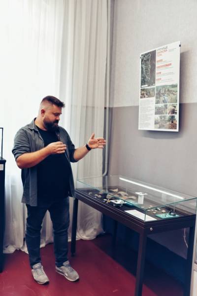 “​Експозиція знайомить відвідувачів з унікальними артефактами, знайденими на території Більського городища. Серед експонатів – предмети з фондових колекцій Полтавського краєзнавчого музею, зокрема й славнозвісний бронзовий казан, а також знахідки цьогорічних археологічних розкопок, проведених експедиціями заповідника «Більськ». Загалом представили 187 експонатів”, – розповів Корост.