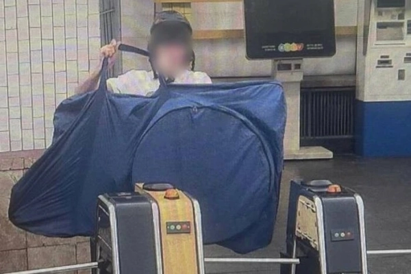 Молодий чоловік пройшов через турнікет з велосипедом, упакованим у спеціальний чохол. Фото: Національна поліція України/Facebook Порушнику загрожує покарання за “ексклюзивне” відео Поліція столичного метрополітену притягнула до відповідальності 22-річного студента, який їхав на велосипеді на ескалаторі метро. Відтепер порушнику загрожуватиме штраф…